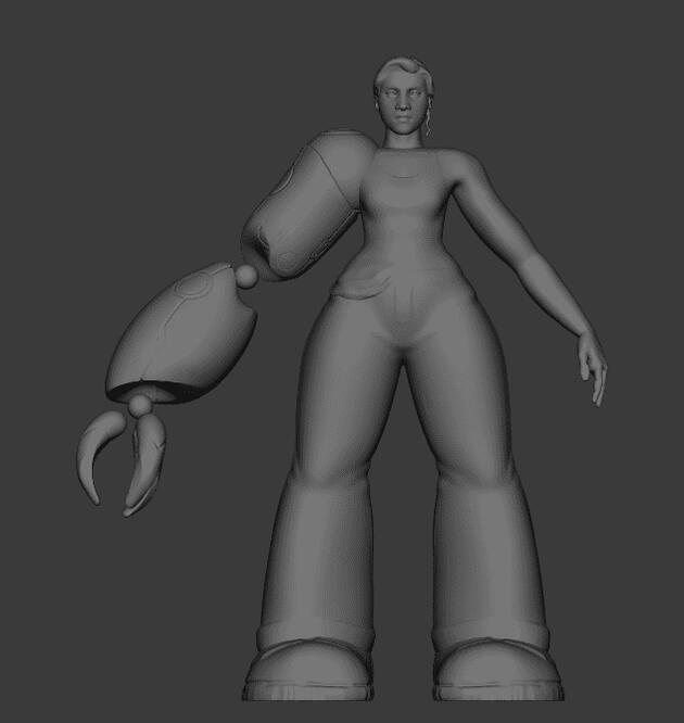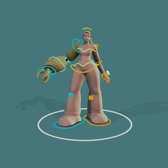 I made the rig so you can move the hovering pieces of her mechanical arm independently but they still follow the arms movement.