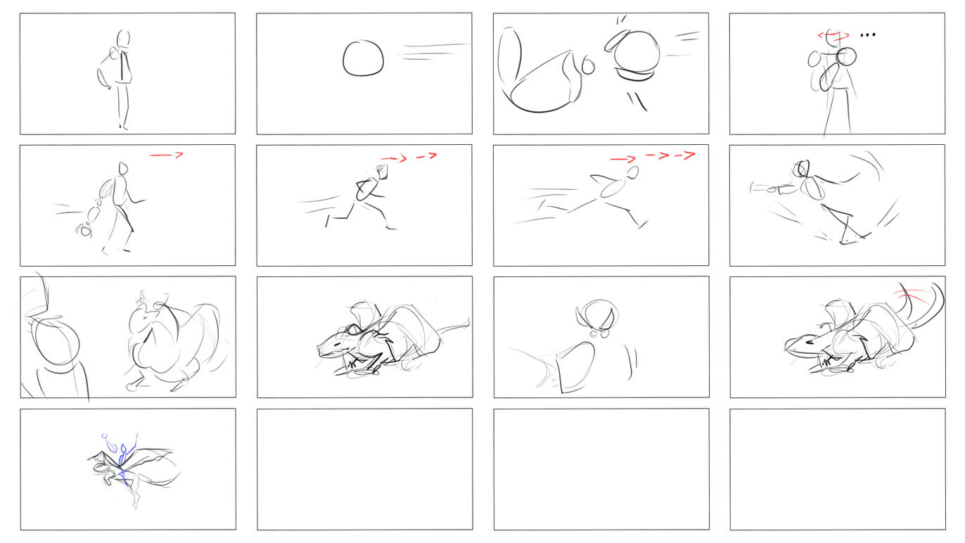 I wanted to make a short cinematic showing two of my rigs in a cute way. The storyboard I made in the beginning helped me with the planning, however, many things changed during the process.